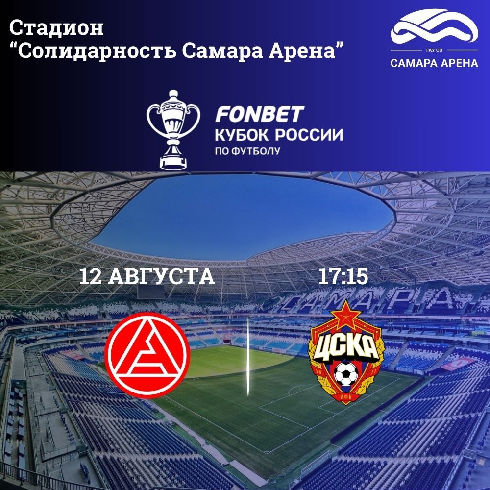 12 августа на стадионе «Солидарность Самара Арена» состоится матч 2 тура Пути РПЛ FONBET Кубка России по футболу.