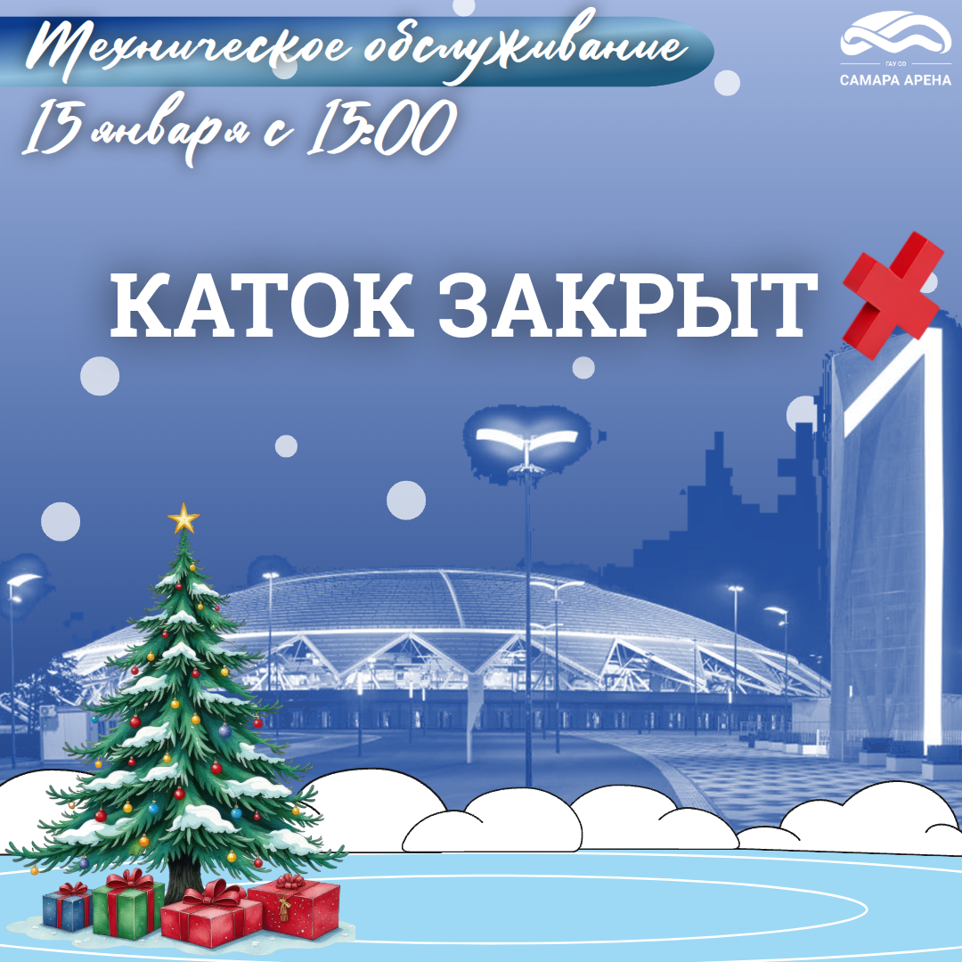 15 января с 15:00 каток будет закрыт на работы по техническому обслуживанию льда.