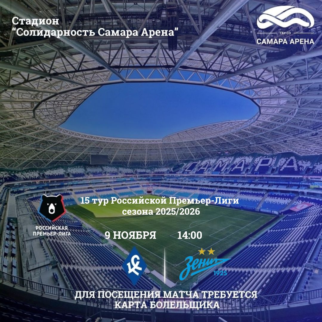 Обращаем ваше внимание, что для посещения матча потребуется Карта болельщика. Оформить документ на себя и на ребенка можно удаленно через Госуслуги или в любом МФЦ Самарской области.