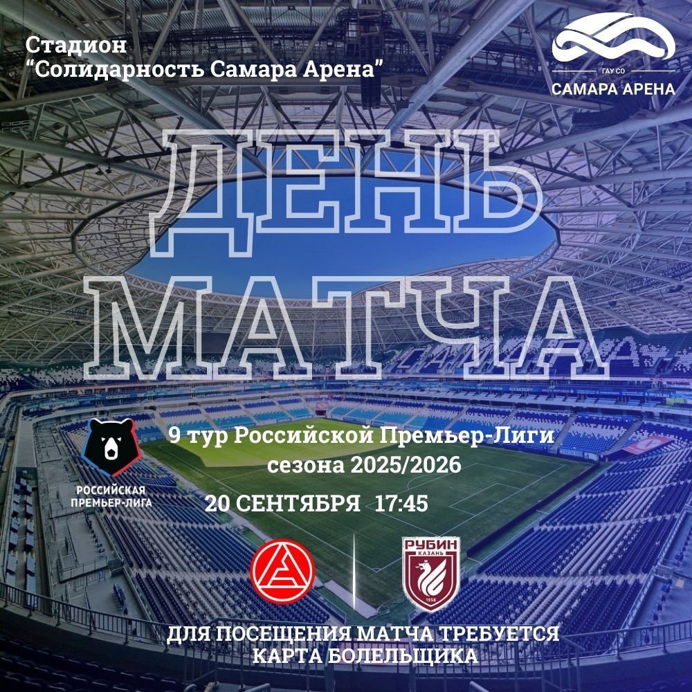20 сентября на стадионе "Солидарность Самара Арена" пройдет матч 9 тура МИР РПЛ между тольяттинским "Акроном" и казанским "Рубином"