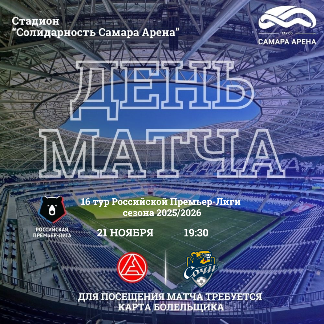 Успели соскучиться по футболу? Тогда закончим эти будни вместе на «Солидарность Самара Арене»!