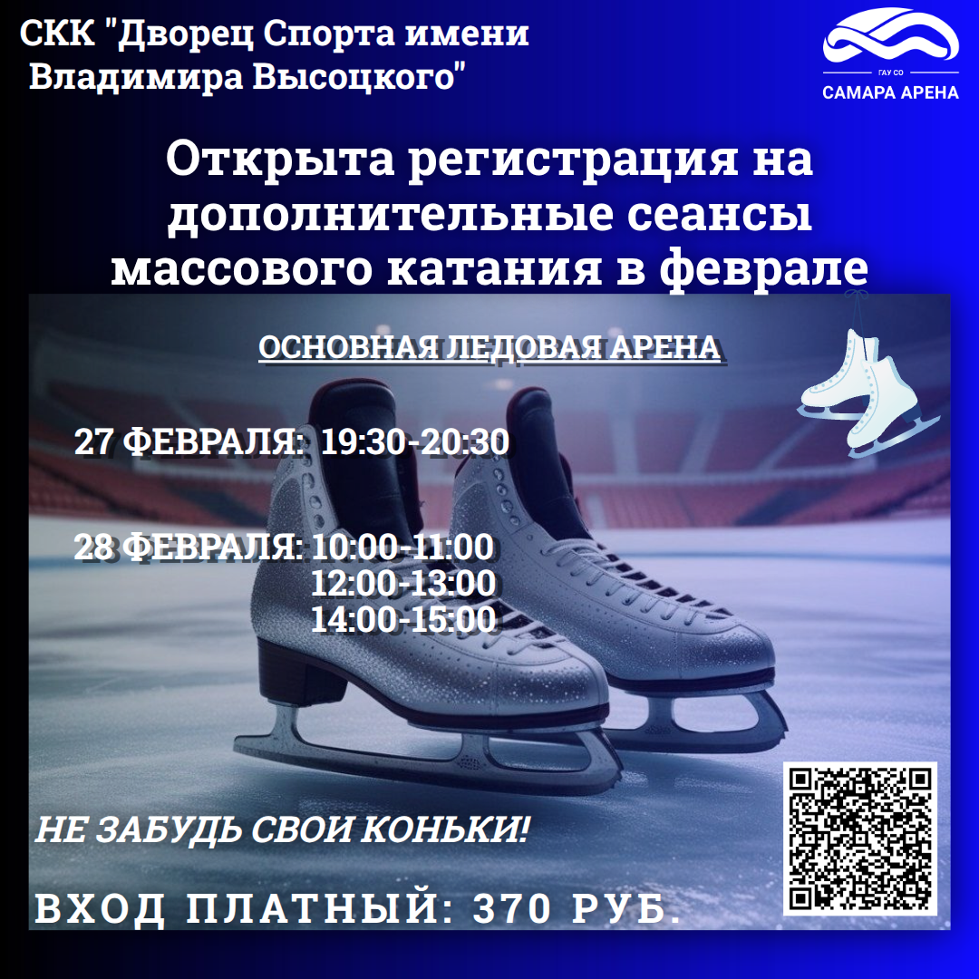 В честь завершения долгой снежной зимы мы приглашаем всех любителей коньков на дополнительные сеансы массового катания в феврале. Регистрация открыта! Не упустите возможность провести время активно и с удовольствием.