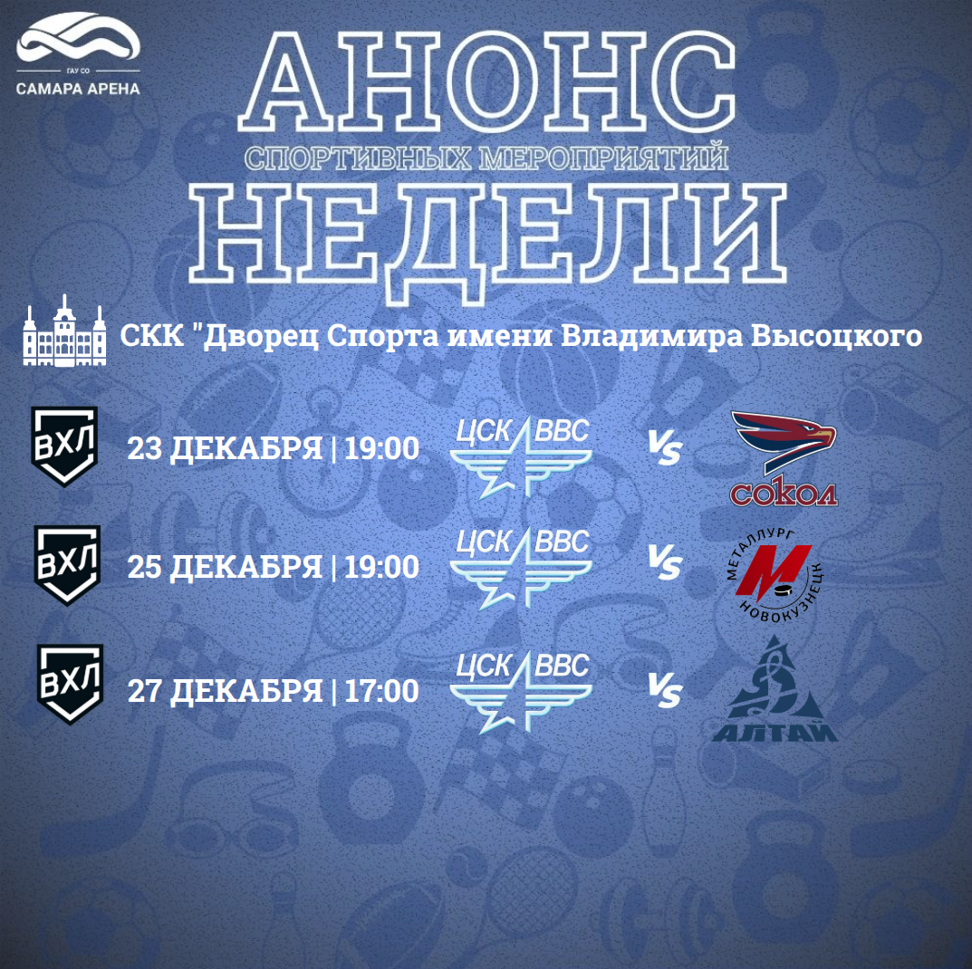 23 декабря | 19:00 ЦСК ВВС сыграет с красноярским «Соколом»