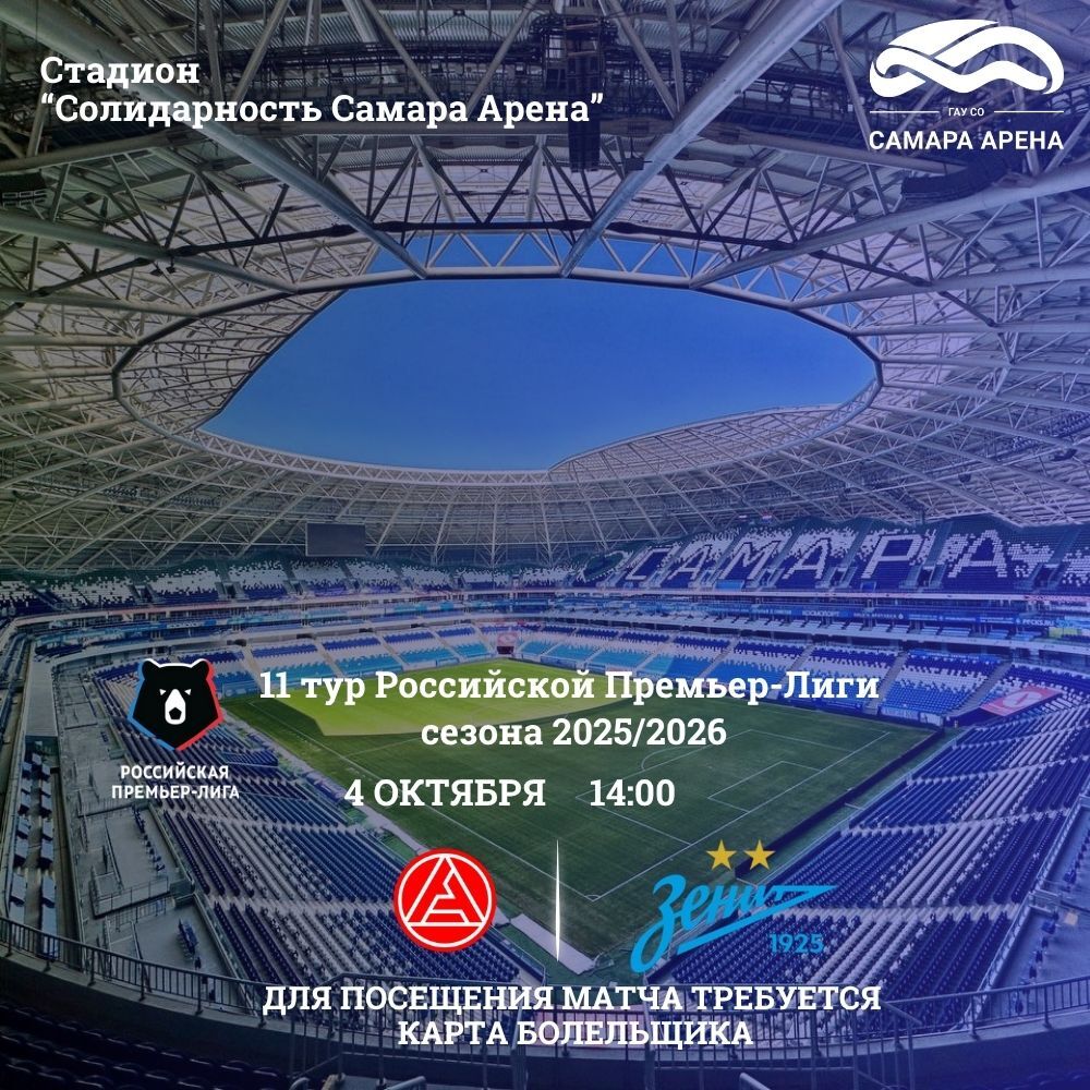 Для посещения матча потребуется Карта болельщика. Оформить документ на себя и на ребенка можно удаленно через Госуслуги или в любом МФЦ Самарской области.